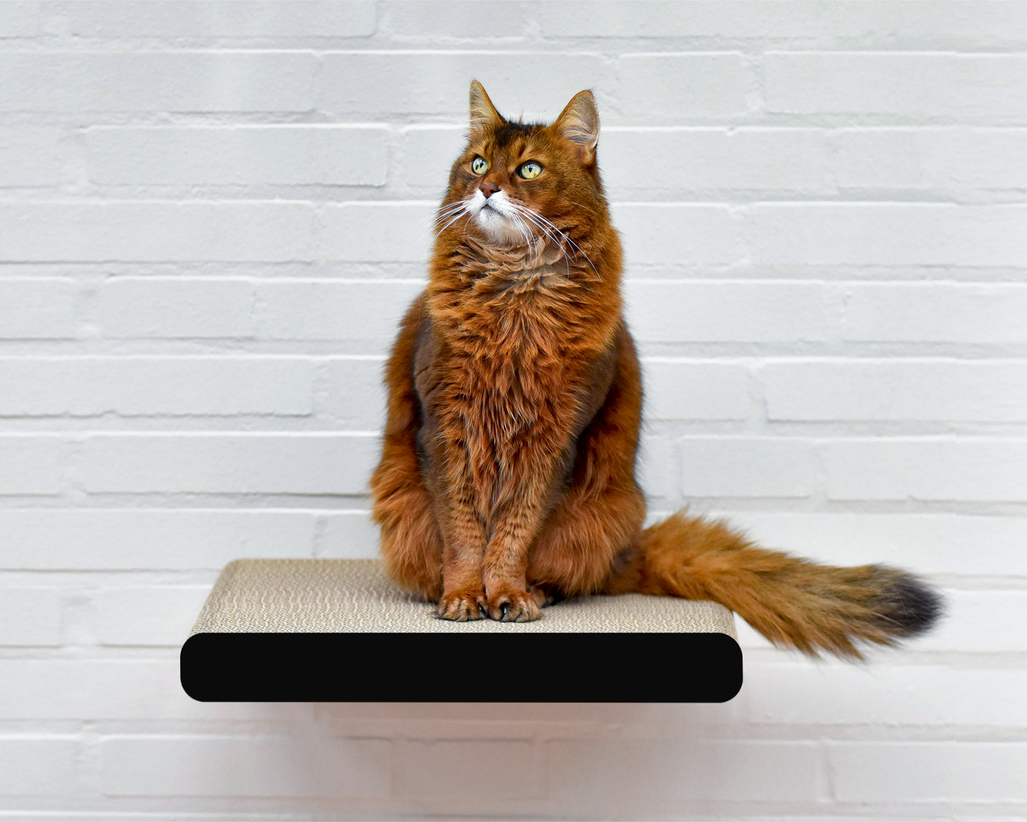 The surface is made from premium scratch cardboard with a pleasant texture and robust honeycomb core. A hidden aluminium mount ensures safe installation and adds to the floating effect – without any visible screws or brackets. This refined simplicity makes the KIM TANA S 45 a highlight in any minimalist cat furniture concept.