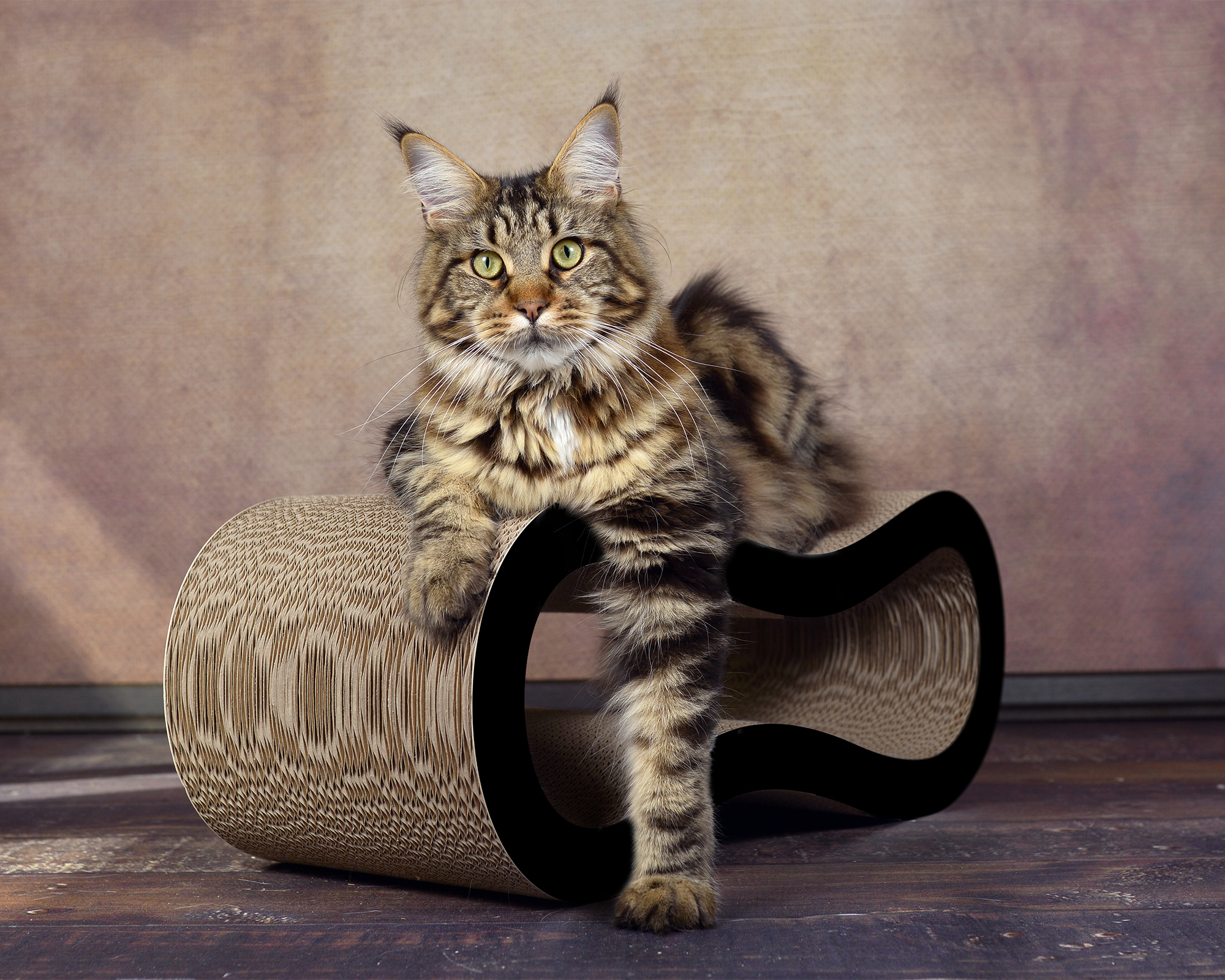 The unique shape of SINGHA M makes it a true cat magnet. Cats love the natural resistance of the scratch surface and the subtle sound it makes when they sharpen their claws – a sensory experience they associate with relaxation and well-being. The slightly elevated surfaces also make it an ideal vantage point to observe the surroundings from a cozy position.