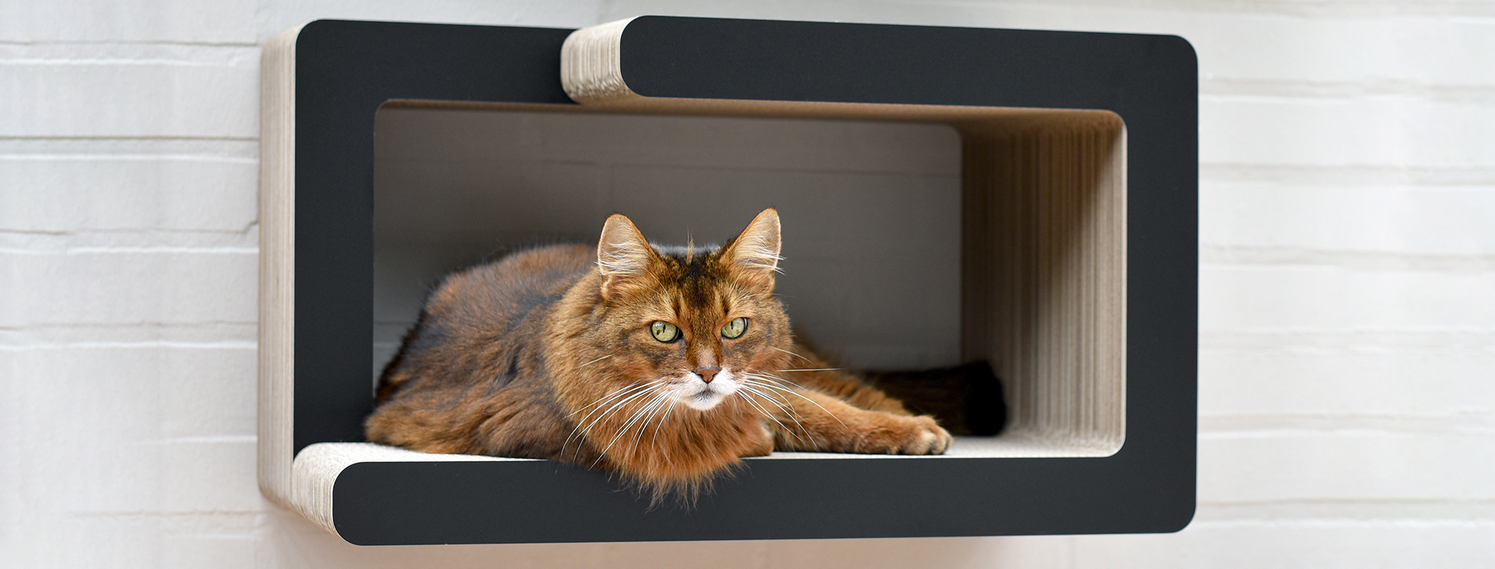 With cat-on wall-mounted furniture you create vertical territory for your feline, while enhancing your own home with sustainable, long-lasting design. Discover why our handmade shelves and scratchers are beloved by cats and their people alike – perfect for anyone who shares their living space with their cat in both comfort and style.