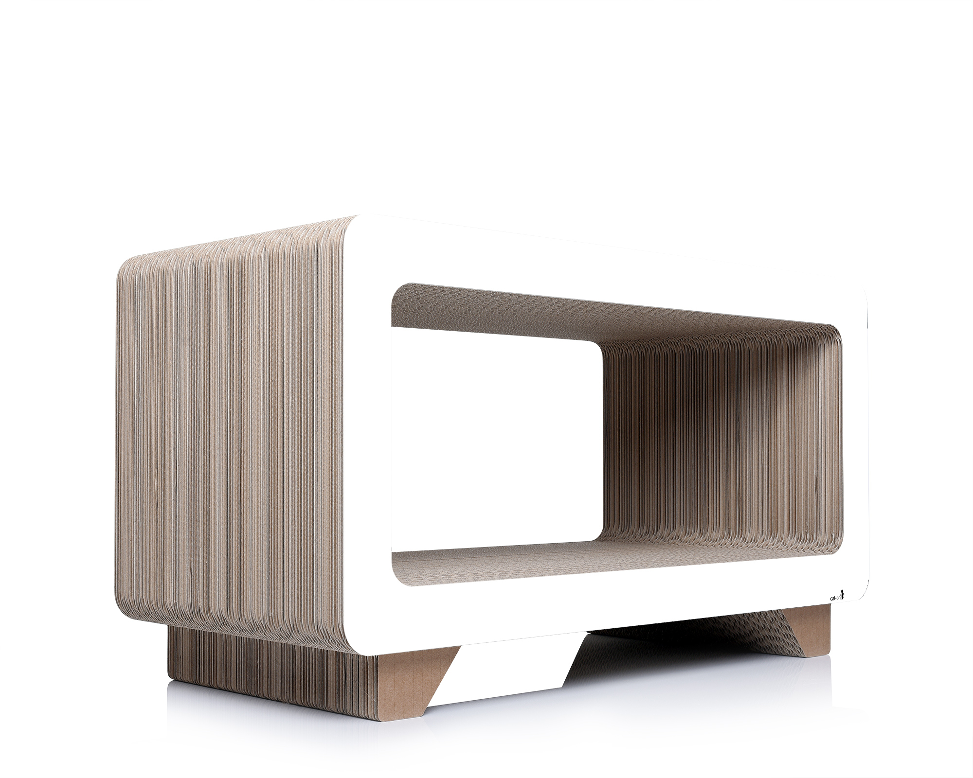 Its smart design offers both a spacious cat hideaway and a robust cardboard cat scratcher that cats adore. The naturally insulating properties of the eco-friendly cardboard create a comfortable environment – warm in winter, cool in summer. Whether used for scratching, lounging or hiding, LA TÉLÉ quickly becomes a favourite retreat for any feline.