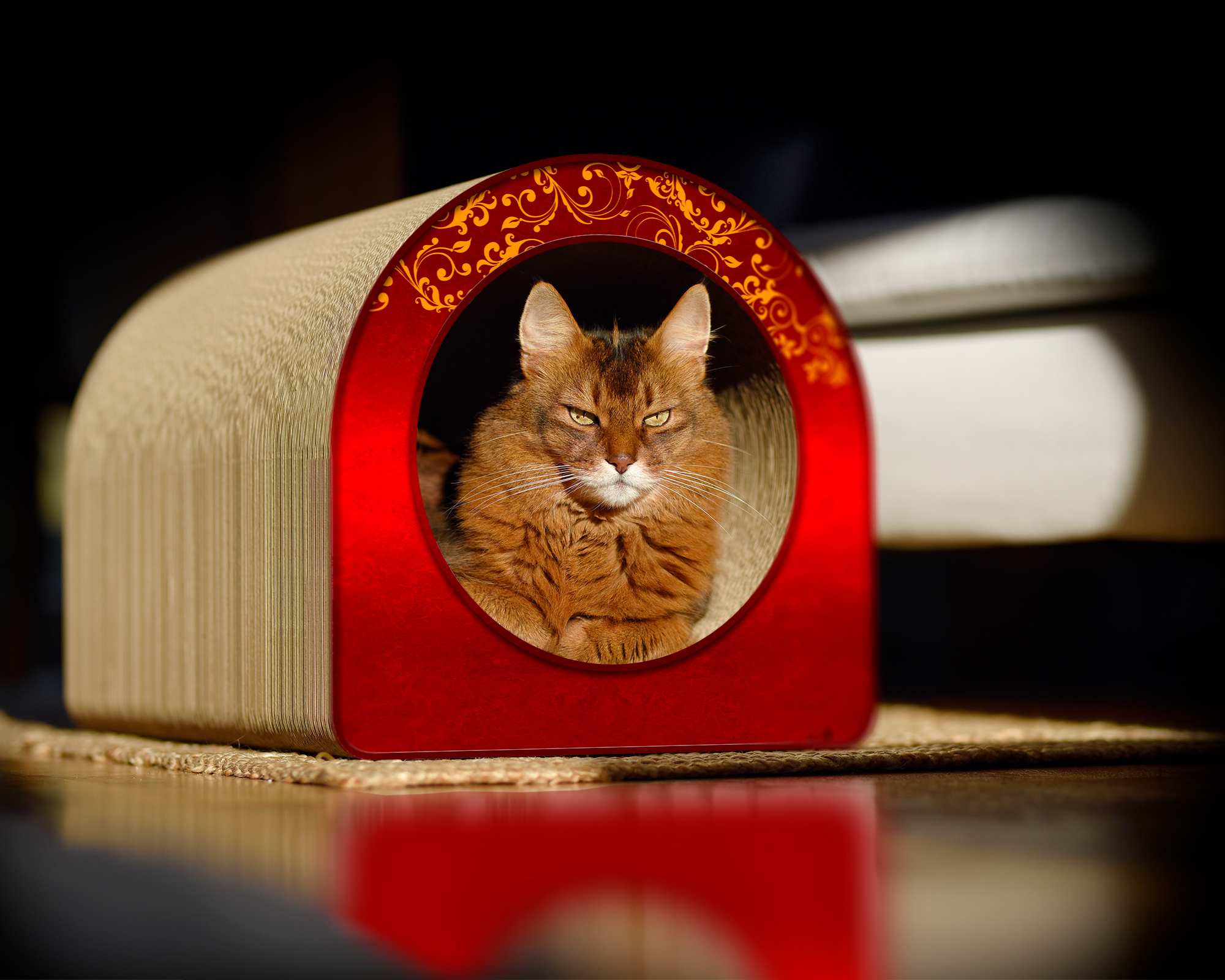 Zusätzlich wirkt ein Katzentunnel als Strukturgeber im Wohnraum. Katzen nutzen gängige Wege, sogenannte „Laufstraßen“. Ein Tunnel schafft genau solch einen spannenden Korridor, der sich harmonisch in das natürliche Bewegungsmuster deines Tieres einfügt. Durch die Positionierung zwischen Möbeln, unter Tischen oder als eigenständiges Designobjekt wird der Wohnraum für Katzen abwechslungsreicher und spannender. Ein bewusst platzierter Tunnel verhindert zudem, dass unerwünschte Stellen – wie Sofakanten oder Teppiche – zum Kratzobjekt werden. Darüber hinaus bietet LE TUBE L auch einen akustisch angenehmen Effekt. Die Wellpappe erzeugt beim Kratzen ein leises, natürliches Geräusch, das Katzen fasziniert und gleichzeitig den Menschen nicht stört.
