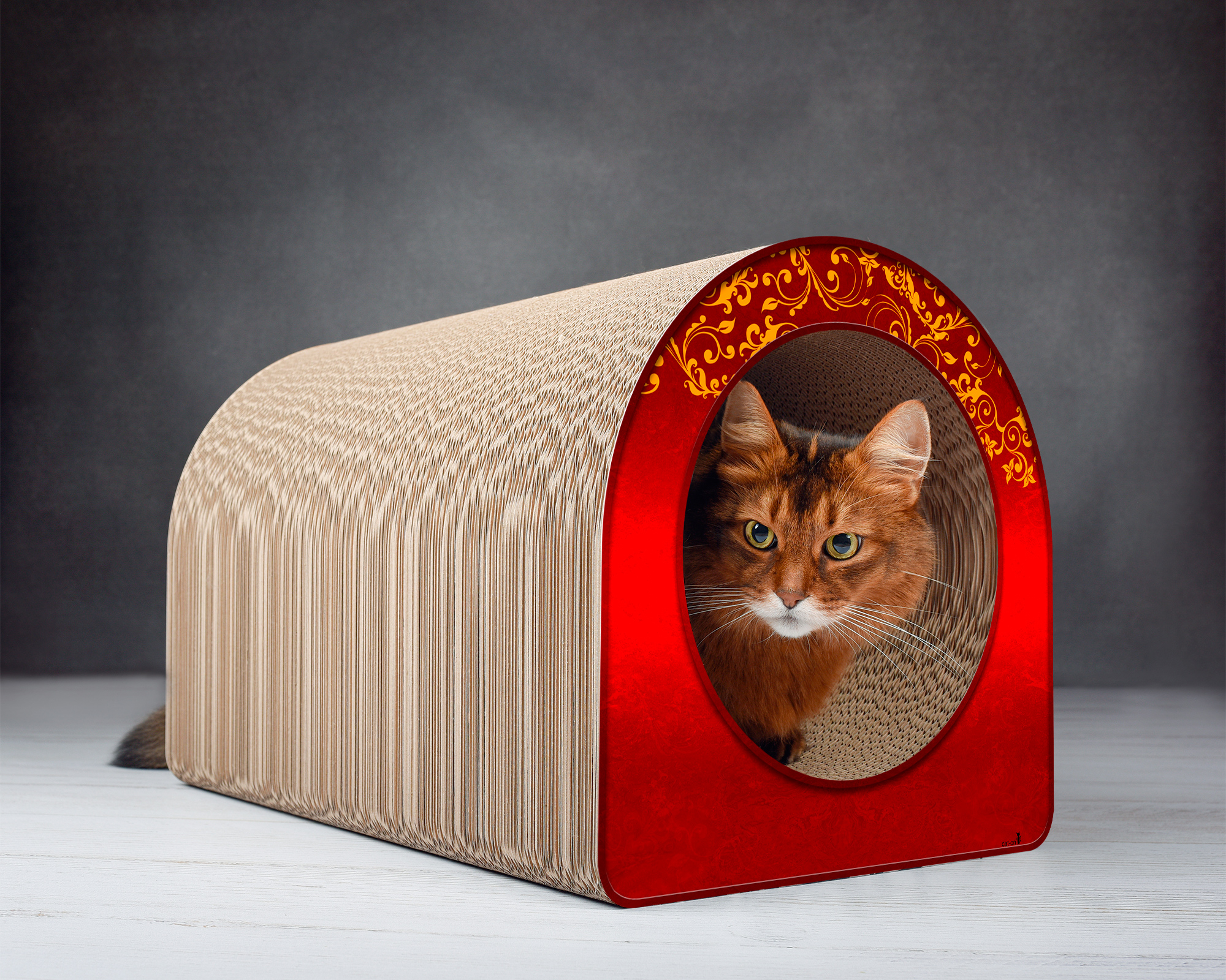 Die dicke, strukturierte Premium-Wellpappe sorgt dabei nicht nur für Stabilität, sondern auch für ein angenehmes Mikroklima. Das Material speichert Wärme leicht, ohne zu überhitzen, und macht den Tunnel zu einem einladenden Schlafplatz, besonders im Winter. Gleichzeitig ist es atmungsaktiv und verhindert einen Hitzestau im Sommer – ein Vorteil gegenüber geschlossenen Stoffhöhlen.